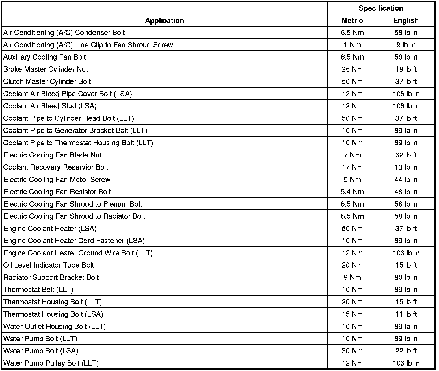 Fastener Tightening Specifications