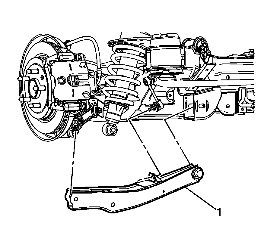9. Remove the rear lower control arm (1).