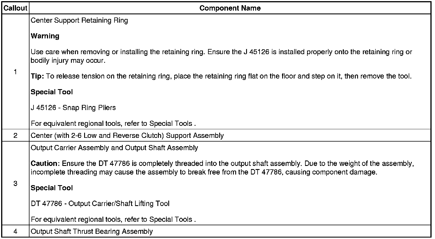 Center Support, Output Carrier and Output Shaft Removal