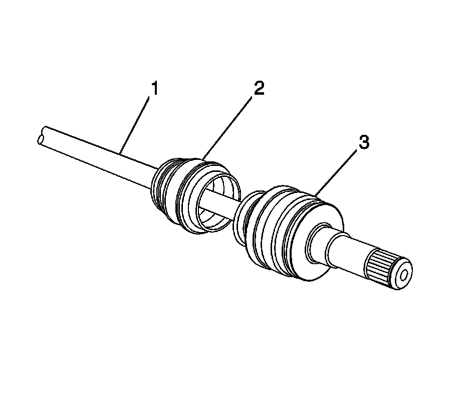Caution: Do not cut through the wheel drive shaft inboard or outboard boot during service. Cutting through the boot may damage the sealing surface of the housing and the tripot or the constant velocity joint bushing. Damage to the sealing surface may lead to water and dirt intrusion and premature wear of the constant velocity joint.