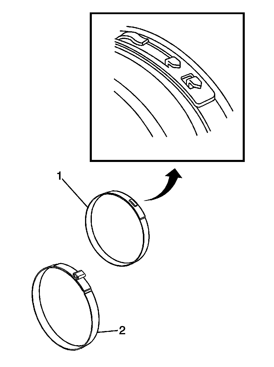 6. The following service procedure is for those vehicles equipped with the ear type boot clamp (2). For those vehicles equipped with the earless type (low profile) (1), proceed to step 8