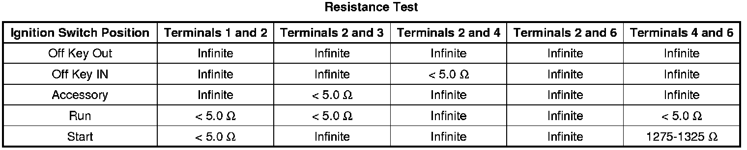 2. Verify the resistance between the terminals listed below match for each S39 ignition switch position.