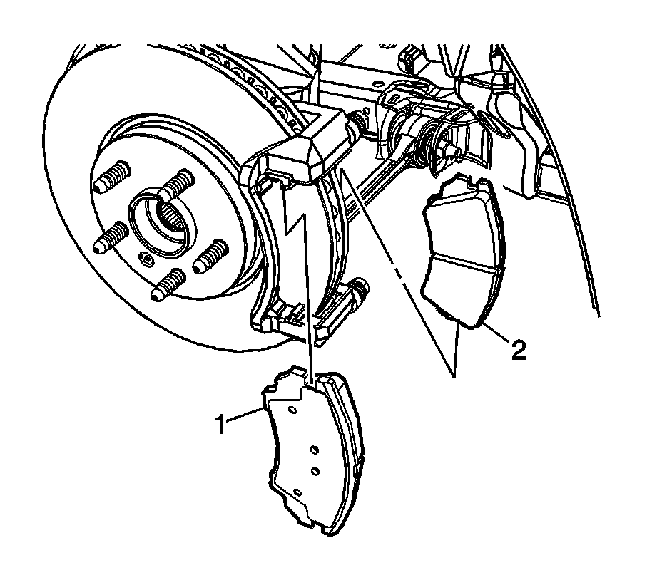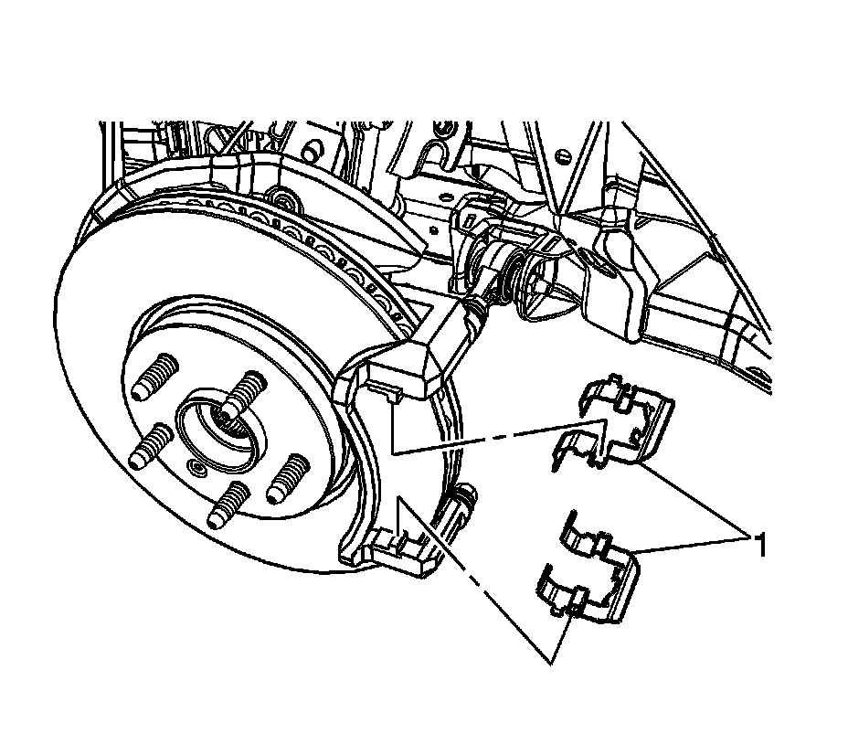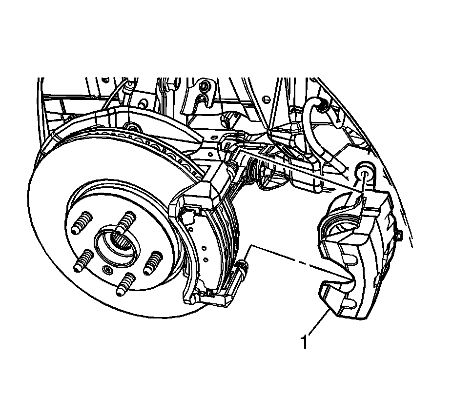 Caution: Support the brake caliper with heavy mechanic wire, or equivalent, whenever it is separated from its mount and the hydraulic flexible brake hose is still connected. Failure to support the caliper in this manner will cause the flexible brake hose to bear the weight of the caliper, which may cause damage to the brake hose and in turn may cause a brake fluid leak.
