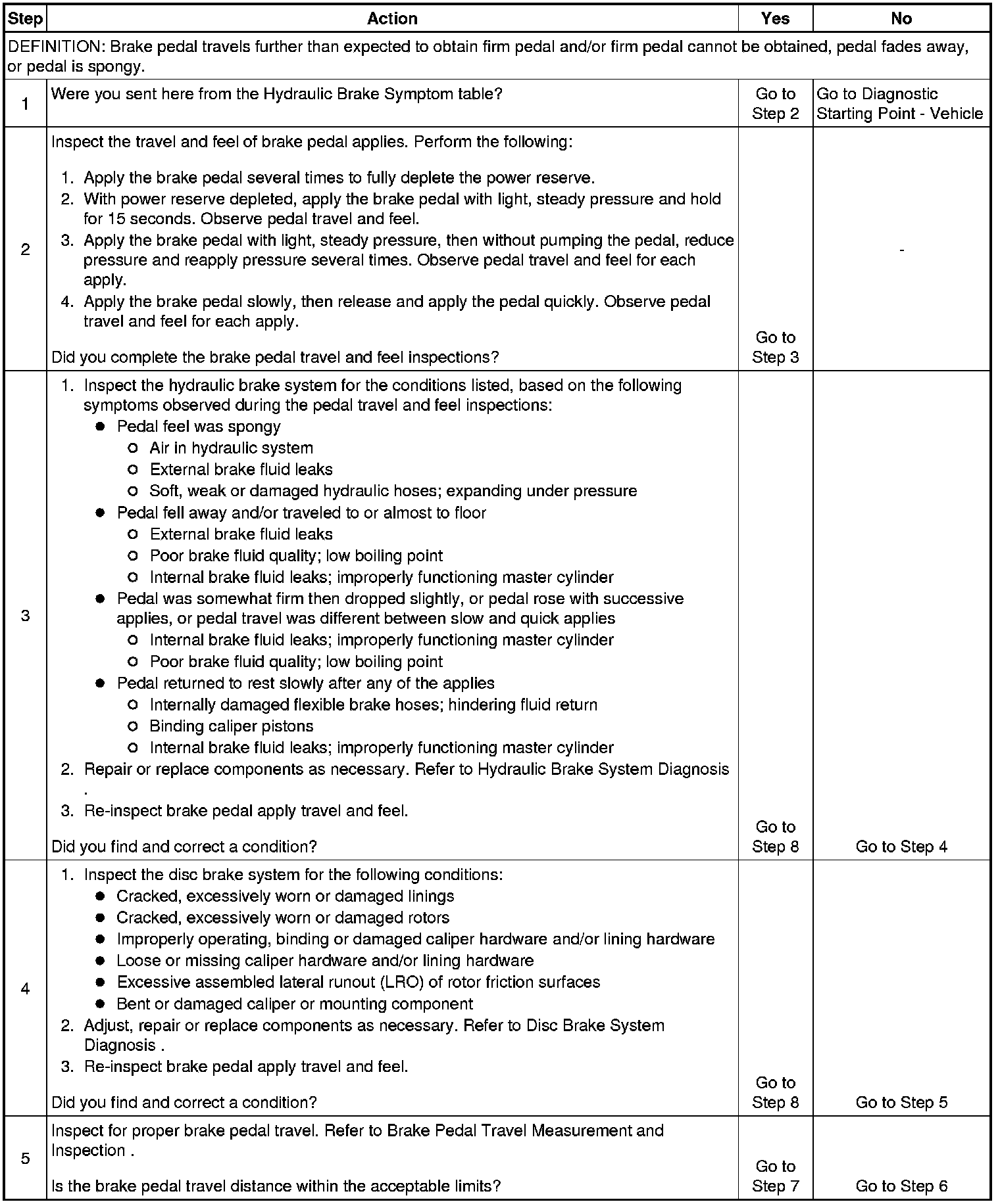 Brake Pedal Excessive Travel