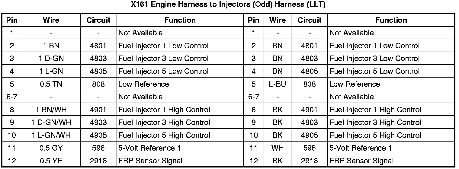 X161 Engine Harness to Injectors (Odd) Harness (LLT)