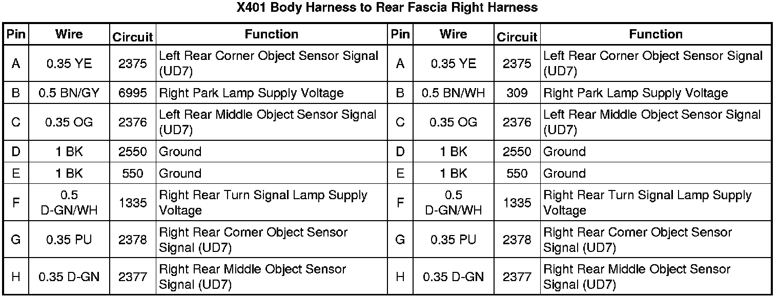 X401 Body Harness to Rear Fascia Right Harness