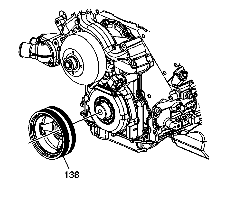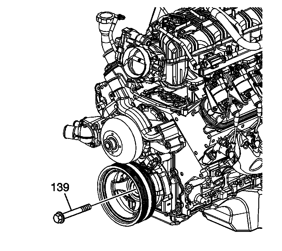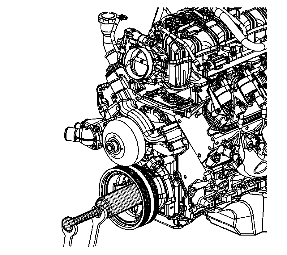 2. Remove the air conditioning (A/C) drive belt. Refer to Air Conditioning Compressor Belt Replacement (Air Conditioning Compressor Belt Replacement).