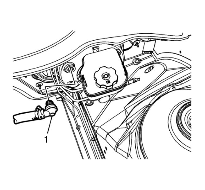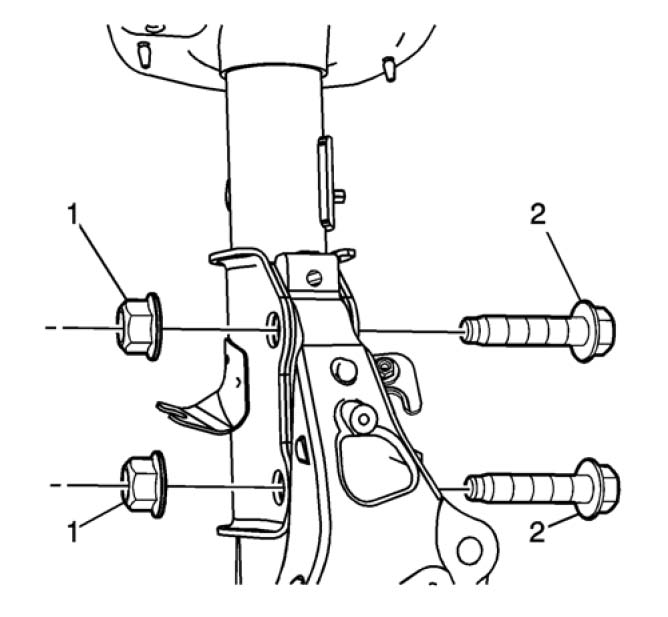 13. Install the brake hose bracket bolt (1) to the front suspension strut and tighten to 9 Nm (80 lb in).