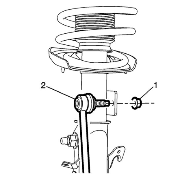30. Remove the front stabilizer shaft nut (1) and discard the old nut.