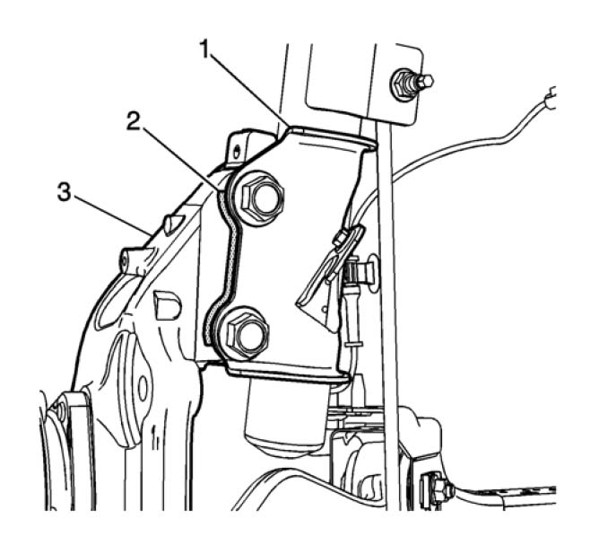 14. Install the brake hose bracket bolt (2) to the wheelhouse panel and tighten to 9 Nm (80 lb in).