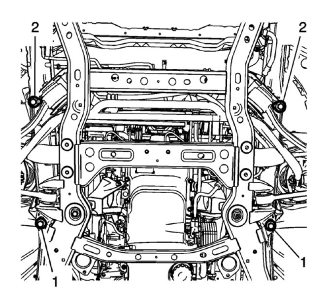 3. Install the front frame (2) mountings bolts and tighten to 160 Nm (118 lb ft).