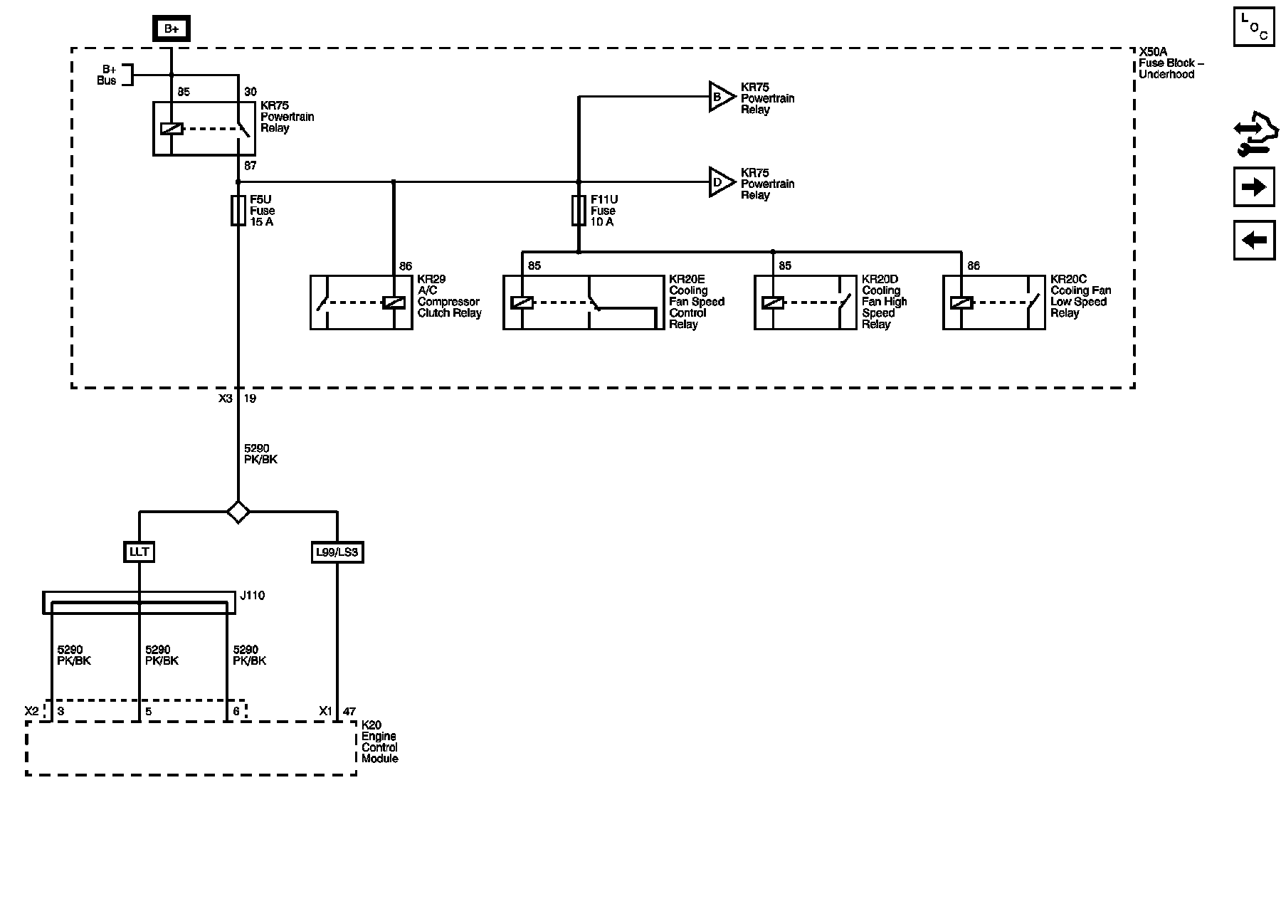 - Underhood - PWR/TRN Relay K26, ECM Fuse 5, and COOL FAN RLY Fuse 11