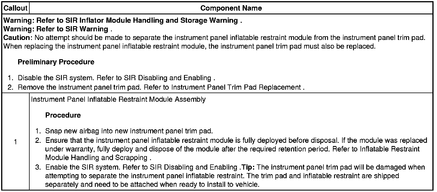 Instrument Panel Inflatable Restraint Module Airbag Replacement