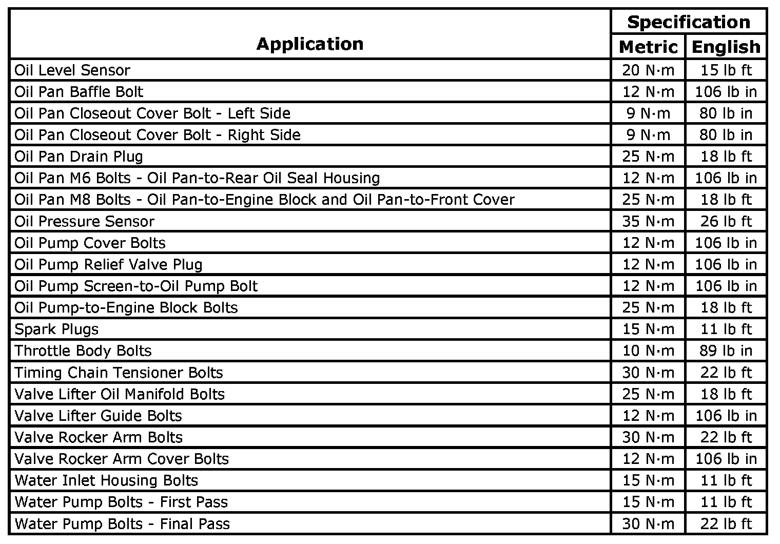 Fastener Tightening Specifications