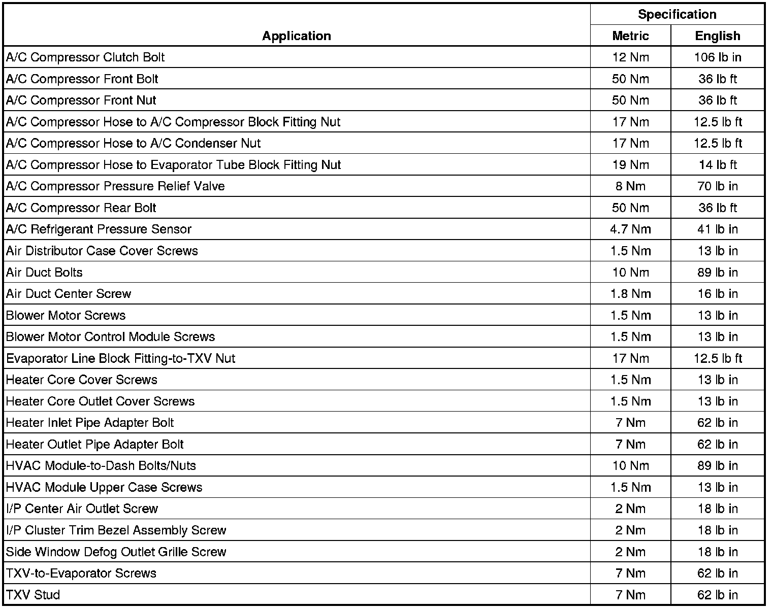 Fastener Tightening Specifications
