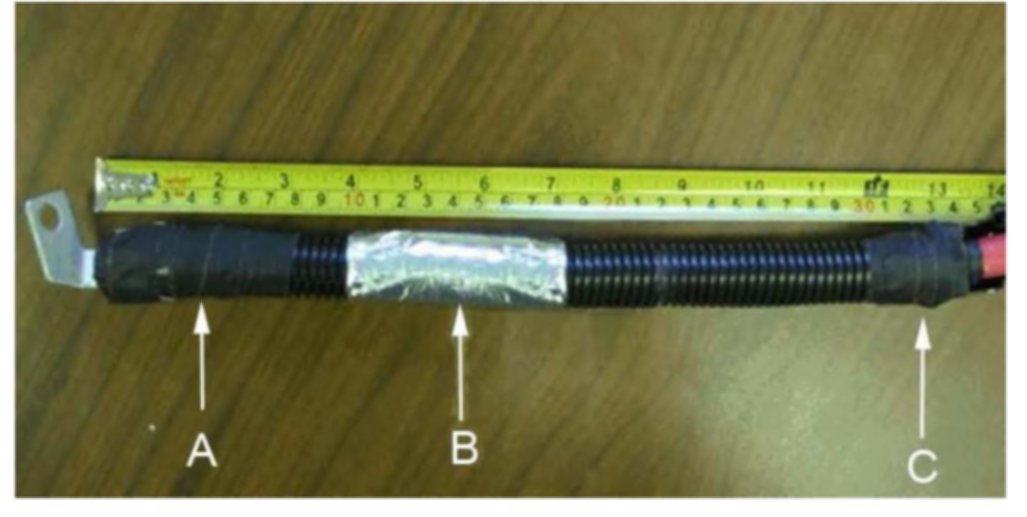 2. Begin wrapping the tape at the terminal end of the battery positive starter cable and continue wrapping the tape 76 mm (3 in) forward toward the front of the vehicle.