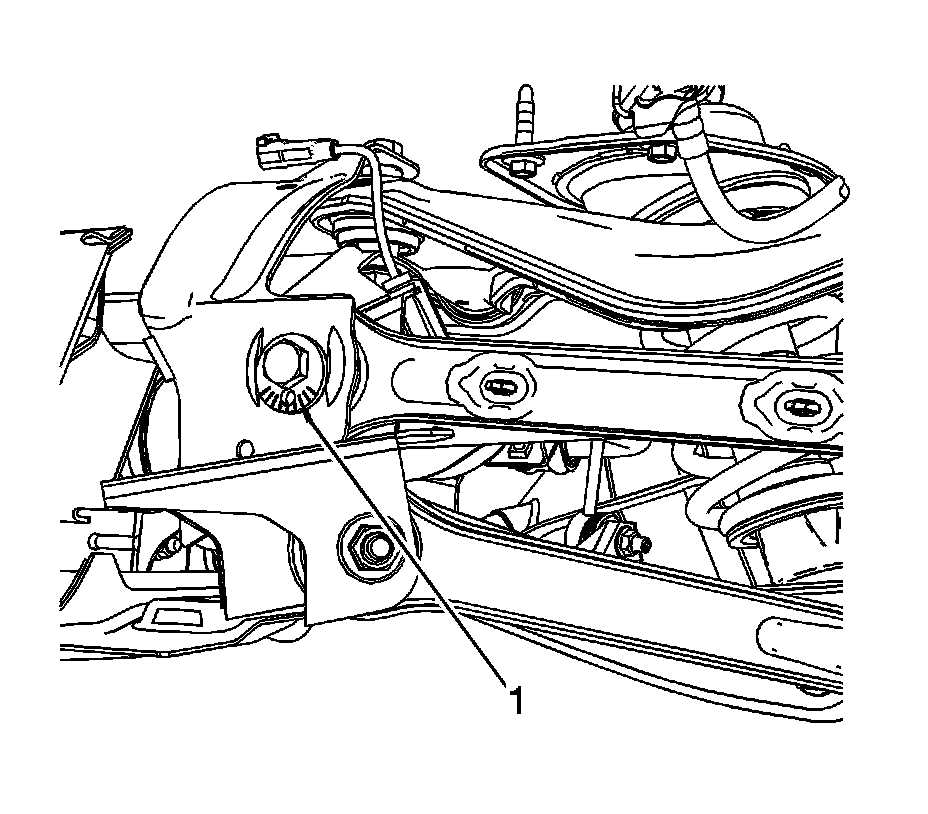 7. Adjust the rear suspension toe to specification by turning adjustment cam (1). Refer to Wheel Alignment Specifications (Wheel Alignment Specifications).
