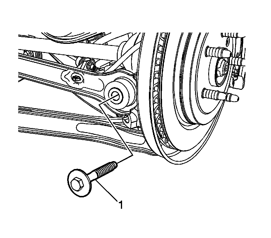6. Remove the rear suspension adjuster link bolt (1) at the knuckle.