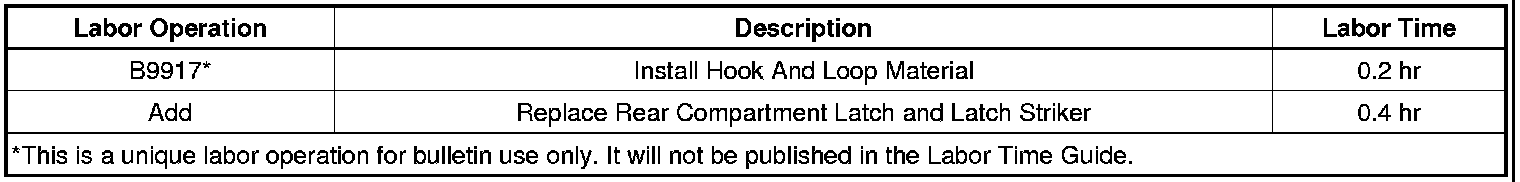 Subject: Rear Compartment Lid (Trunk) Latch Binds and/or Difficult to Open or Close (Replace Latch and Latch Striker, Install Hook and Loop Material)