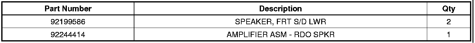 Replace both front door speakers (GM P/N 92199586) and the amplifier (GM P/N 92244414). Refer to Radio Front Side Door Speaker Replacement and Radio Speaker Amplifier Replacement in SI.