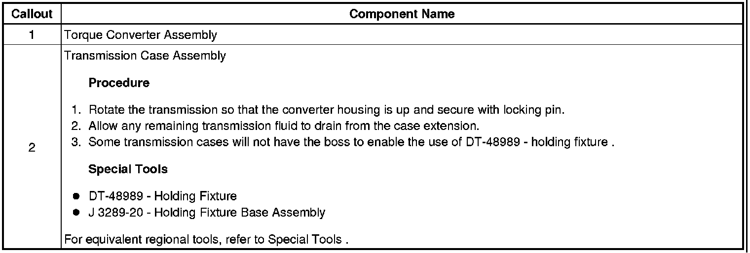 1. Torque Converter Removal and Holding Fixture Installation