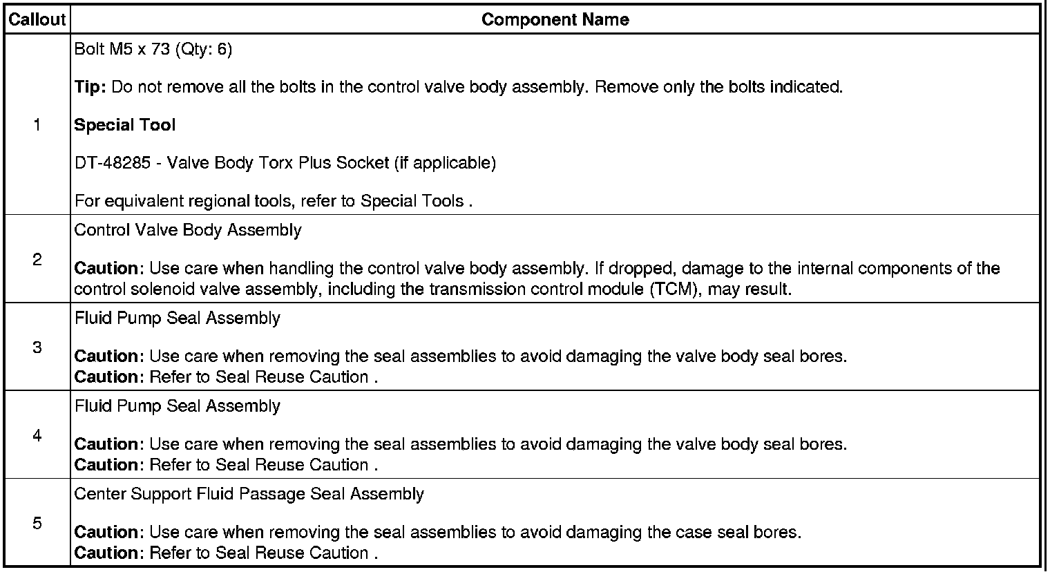 5. Control Valve Body Assembly Removal