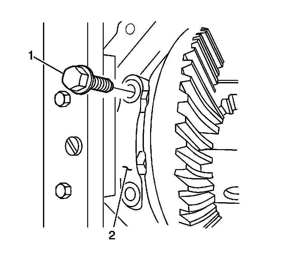 5. Remove the differential bearing caps (2) and the bolts (1)