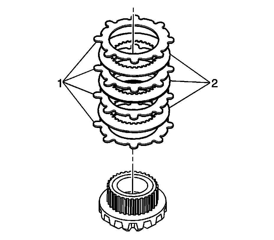 1. Install the clutch disc thrust washers (4) on the pinion side gears with the bevel facing out.