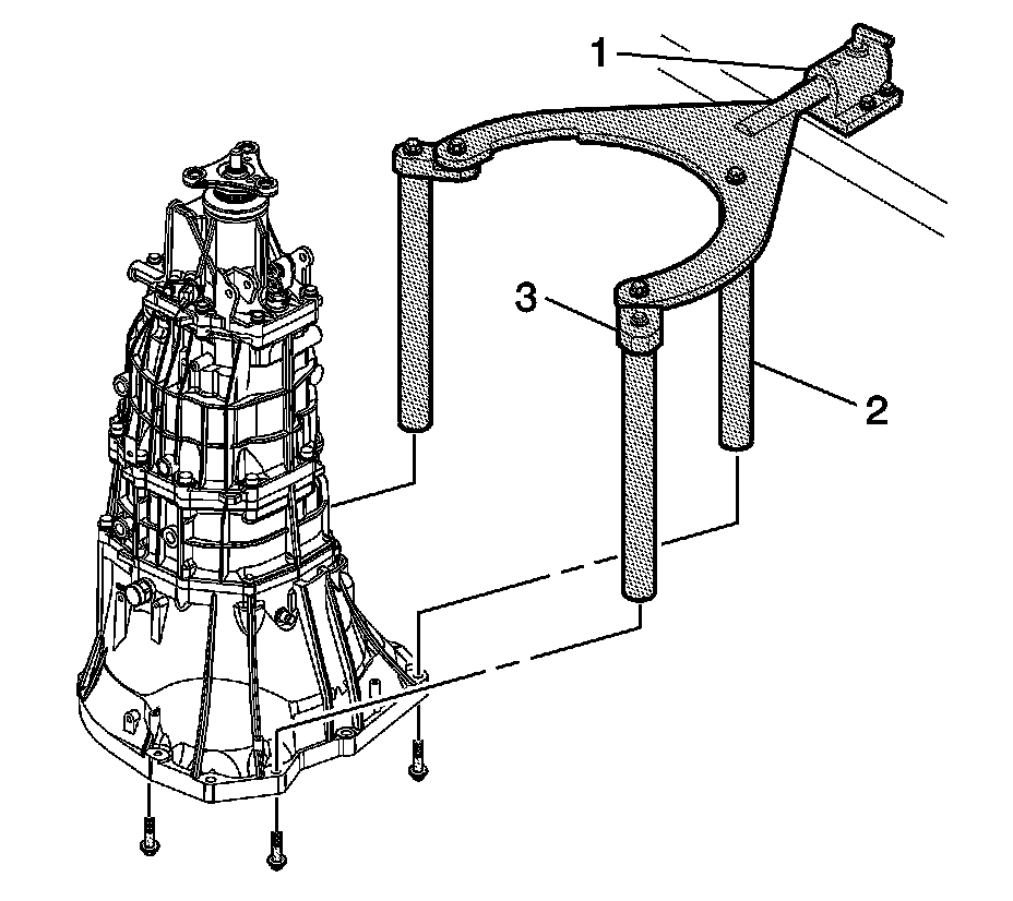 1. Install DT-47678 - fixture (2) and DT-47678-10 - adapters (3) to the transmission clutch housing.