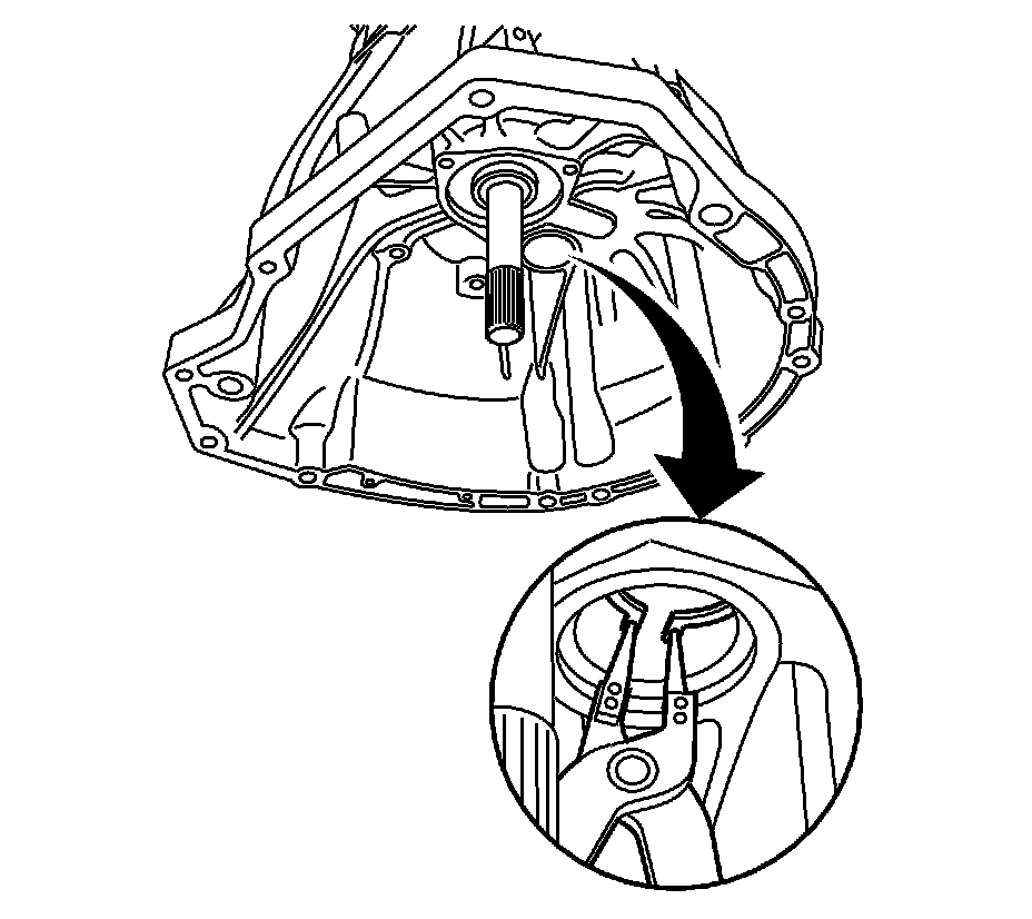 38. Expand and hold the snap ring on the rear input shaft bearing.