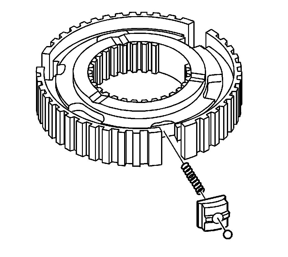 2. Remove the synchronizer insert and spring from the synchronizer hub. Press the spring and slide the insert out.