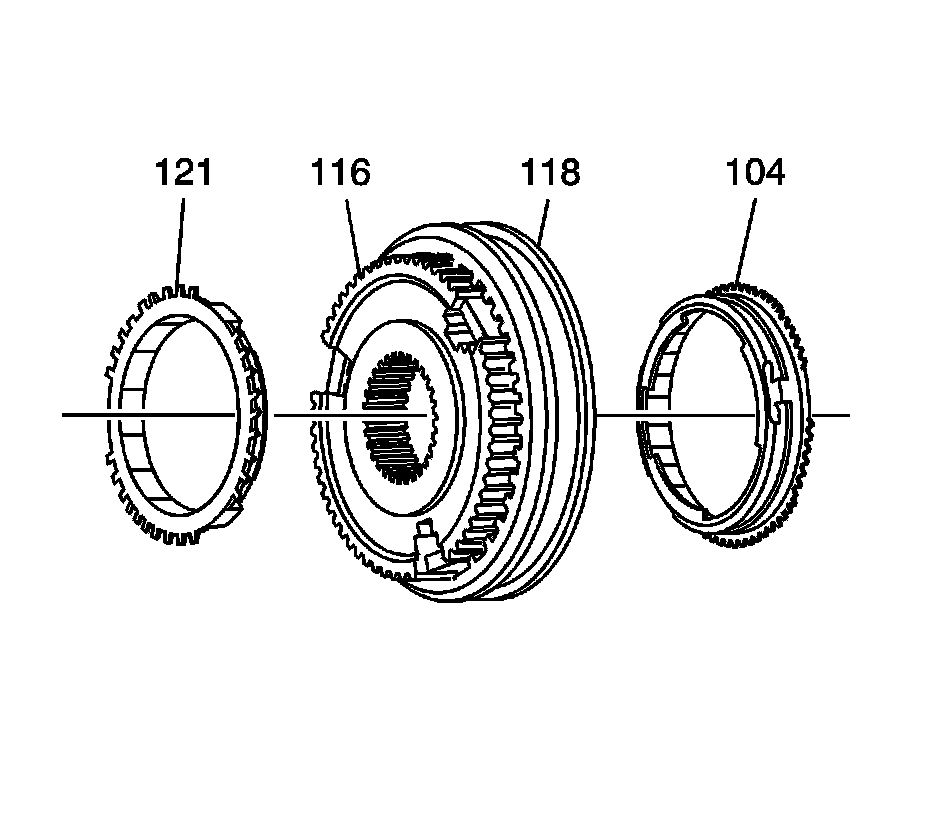 1. Remove the following components from the 5th/6th synchronizer hub (124/118):