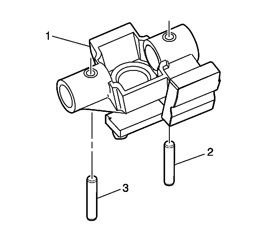 5. Install the shift lever guide bolts (1) while pulling up on 5th/6th and reverse shift rail assembly. Tighten the bolts to 27 Nm (20 lb. ft).