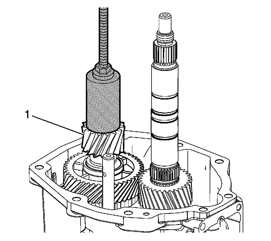 7. Install the 5th/6th speed driven gear (1) by heating to 54°C (130°F). The smaller outside diameter (OD) of the gear faces down.