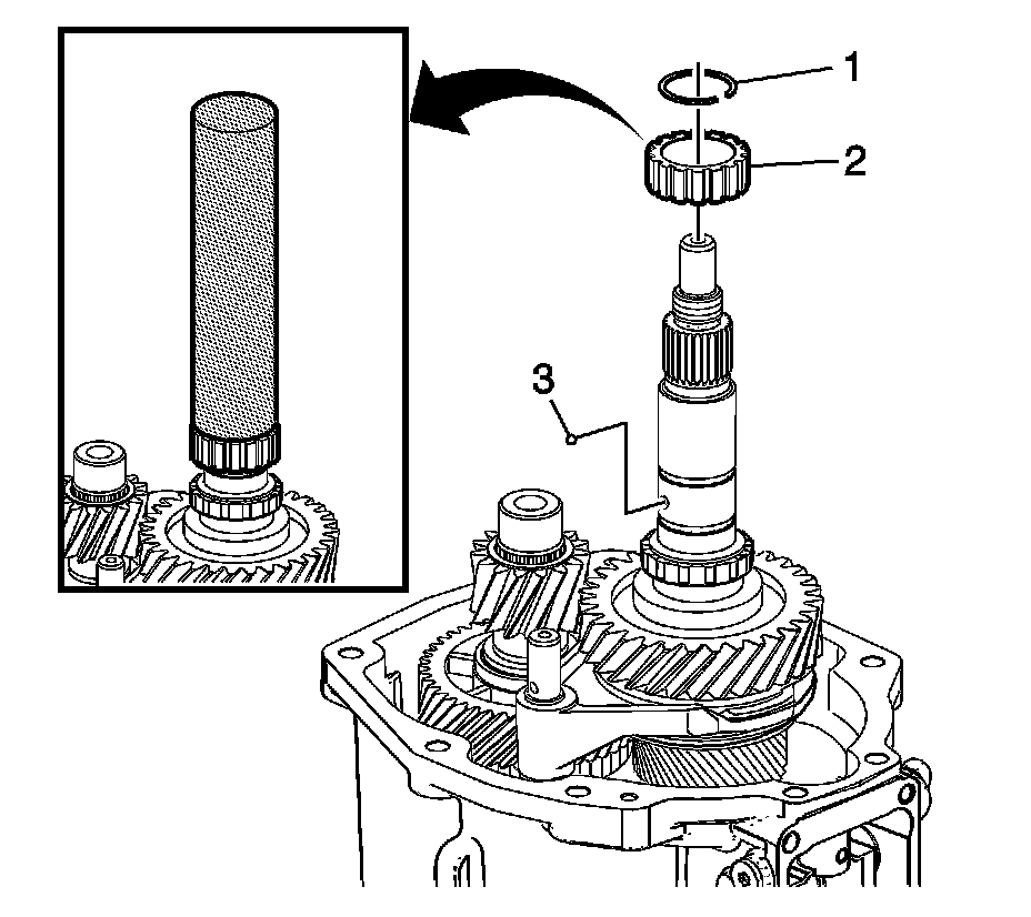 4. Install the extension housing main shaft bearing race (3).