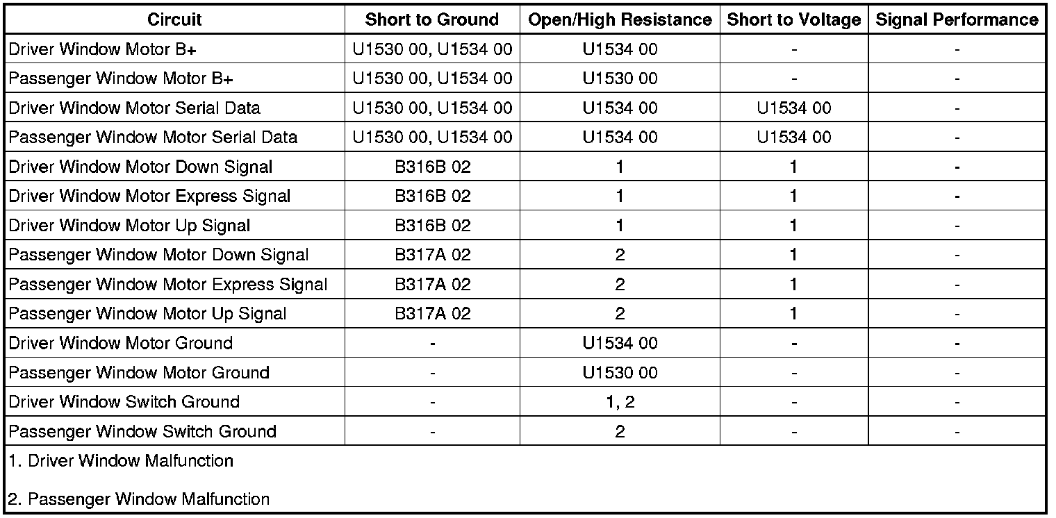 • If the passenger window does not perform as specified, refer to Window Motor Malfunction.