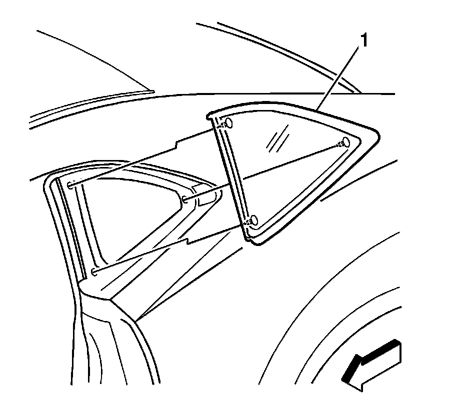 1. Install the quarter modular window into the opening. Refer to Adhesive Installation of Bodyside Stationary Windows (Adhesive Installation of Bodyside Stationary Windows).