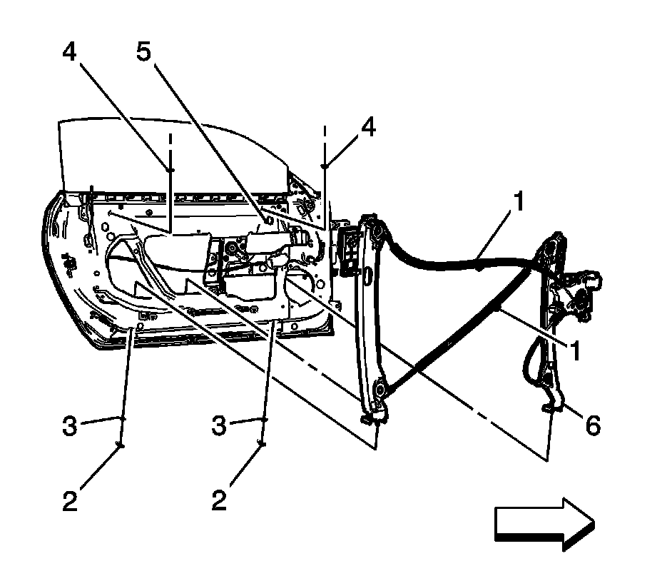 5. Remove the front side door window. Refer to Front Side Door Window Replacement, Service and Repair