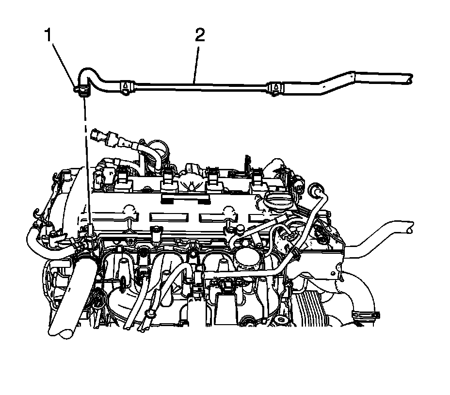 6. Remove the surge tank inlet hose (2) from the engine.