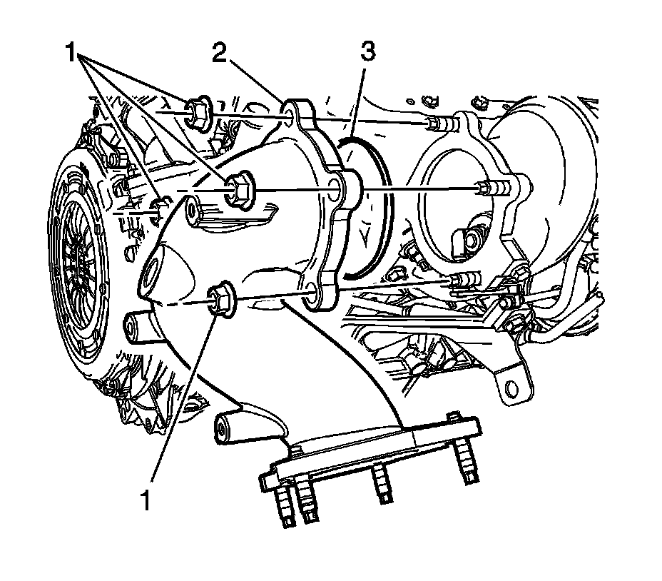 5. Install the turbo brace (3) the turbo brace bolts (1) and the turbo brace nut (2) and tighten to 58 Nm (43 lb ft).