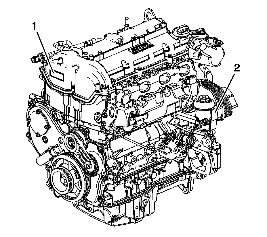 Identification can be made through the use of the broadcast code label (1) on the engine front cover and the use of the partial vehicle identification number (VIN) etched in one of two places - the primary location is on the starter motor flange (3). The secondary location is the oil filter bowl (2).