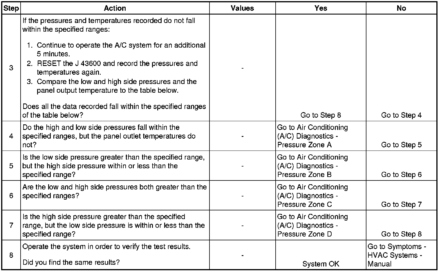 1. This step determines if the A/C system has at least the minimum refrigerant charge required to operate the system without damage.