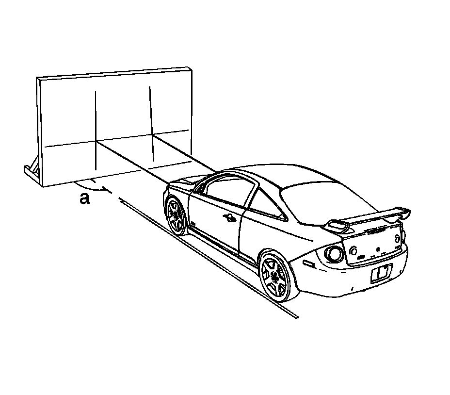 6. The left vehicle tires must be aligned with the reference line extending from the screen with the headlamps aligned with the reference line.