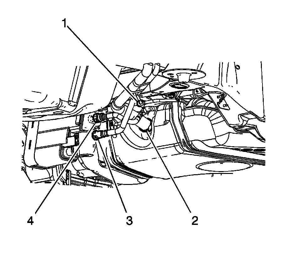 6. Disconnect the fuel tank vent pipe quick connect fittings (1, 3). Refer to Plastic Collar Quick Connect Fitting Service (Plastic Collar Quick Connect Fitting Service).