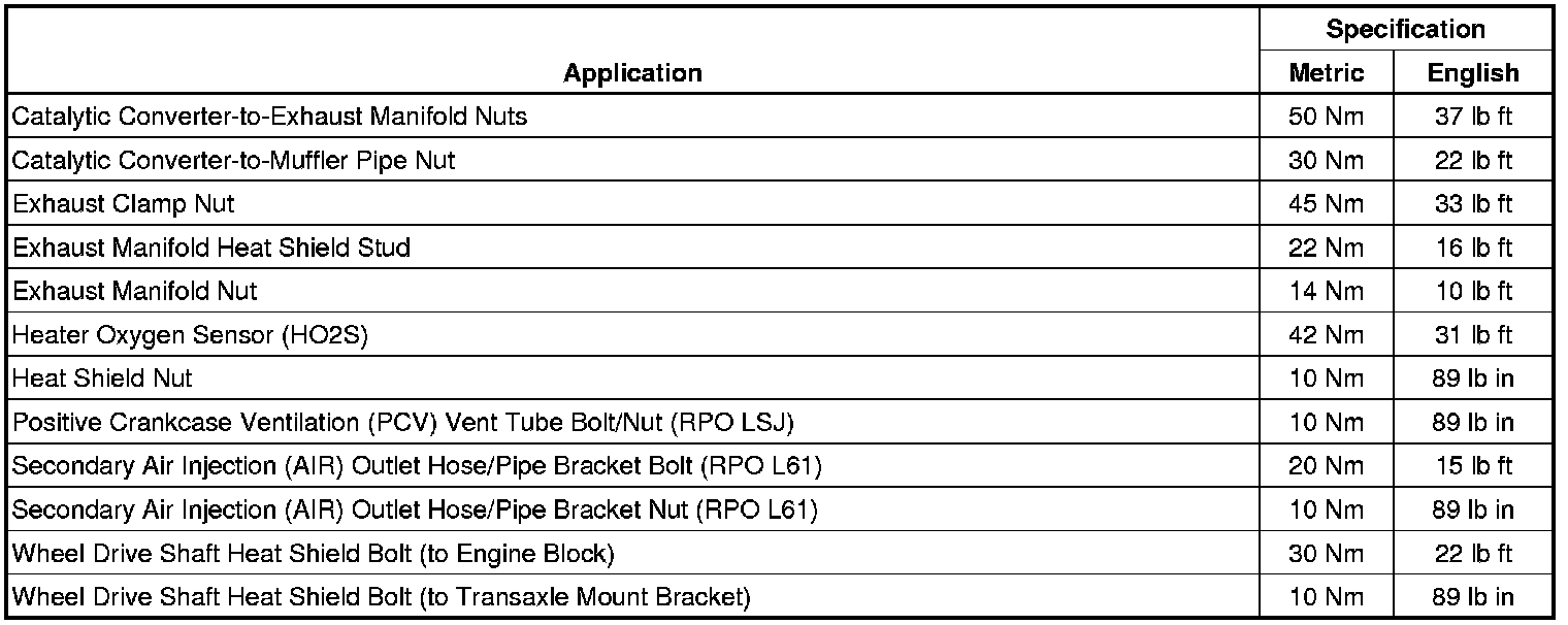 Fastener Tightening Specifications