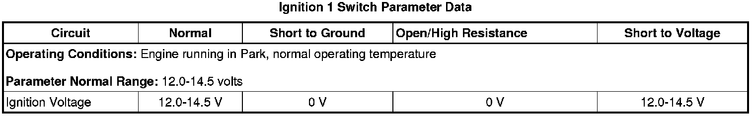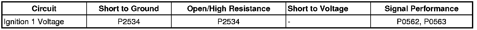 The TCM detects an open or short to ground on the Ignition 1 voltage circuit.