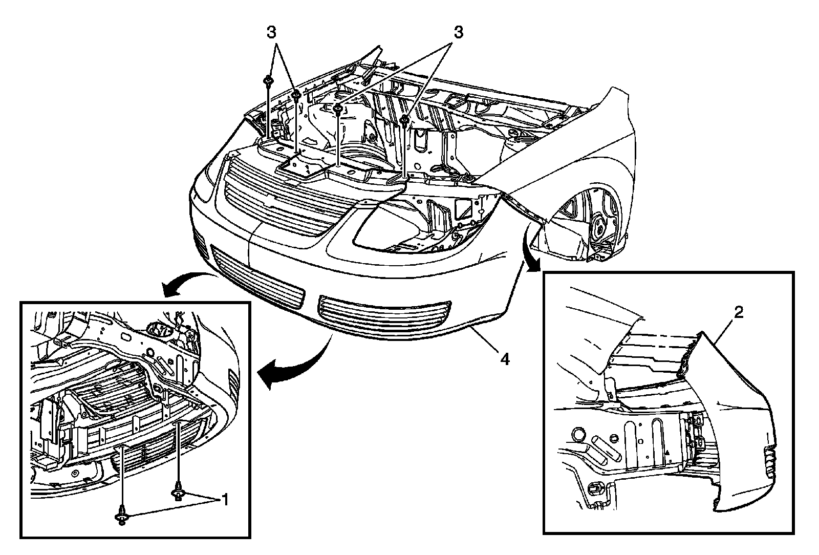 4.Remove the fog lamps, if equipped. Refer to Front Fog Lamp Replacement .
