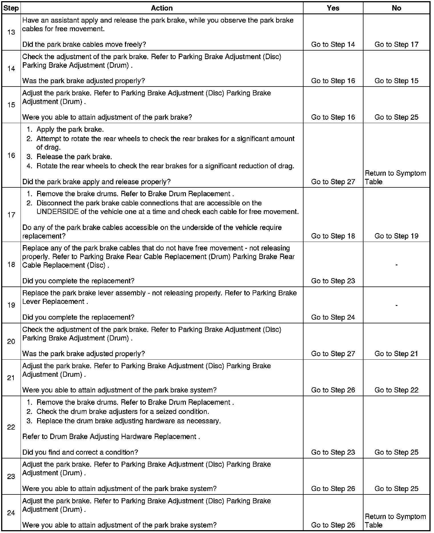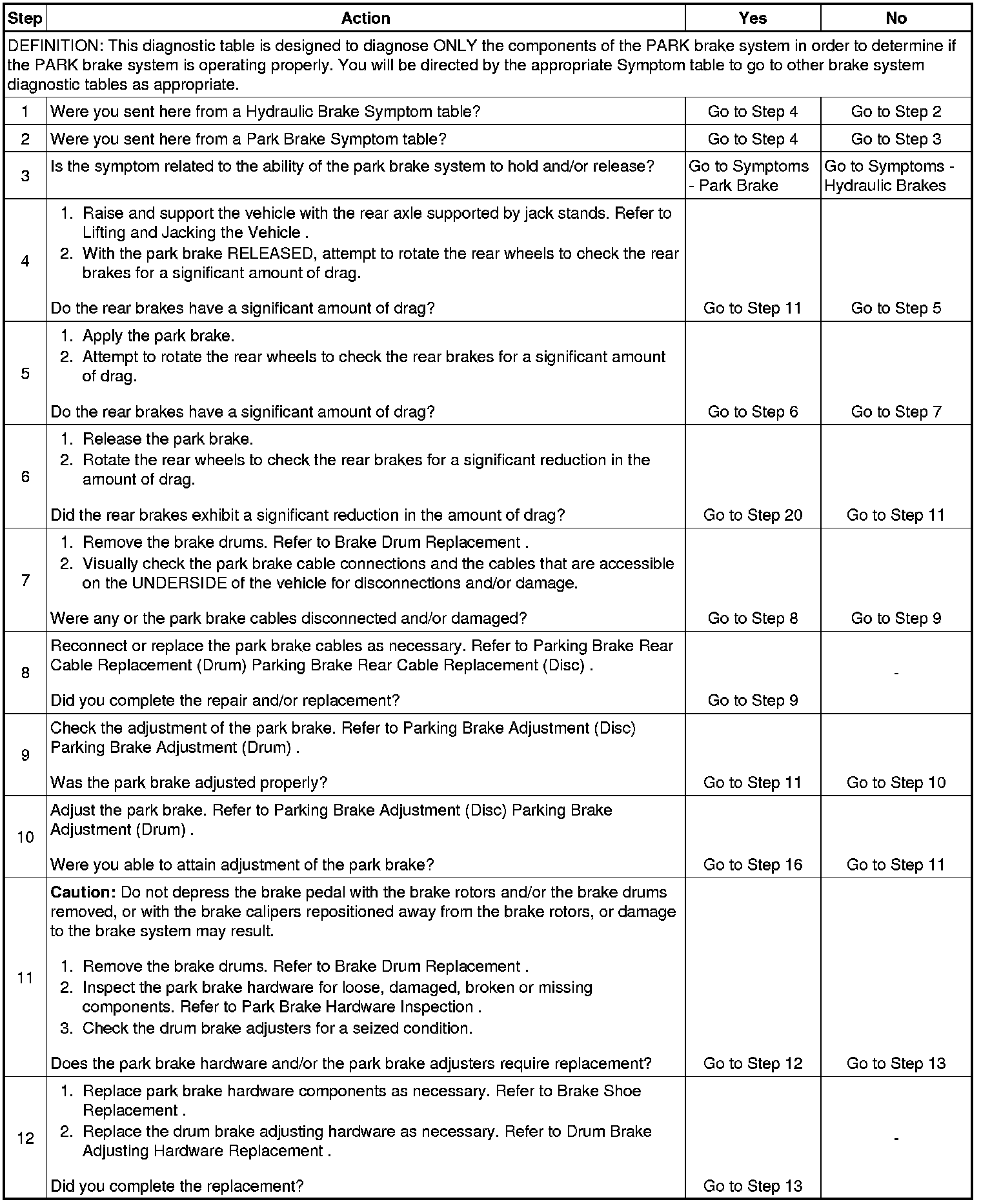 Park Brake System Diagnosis