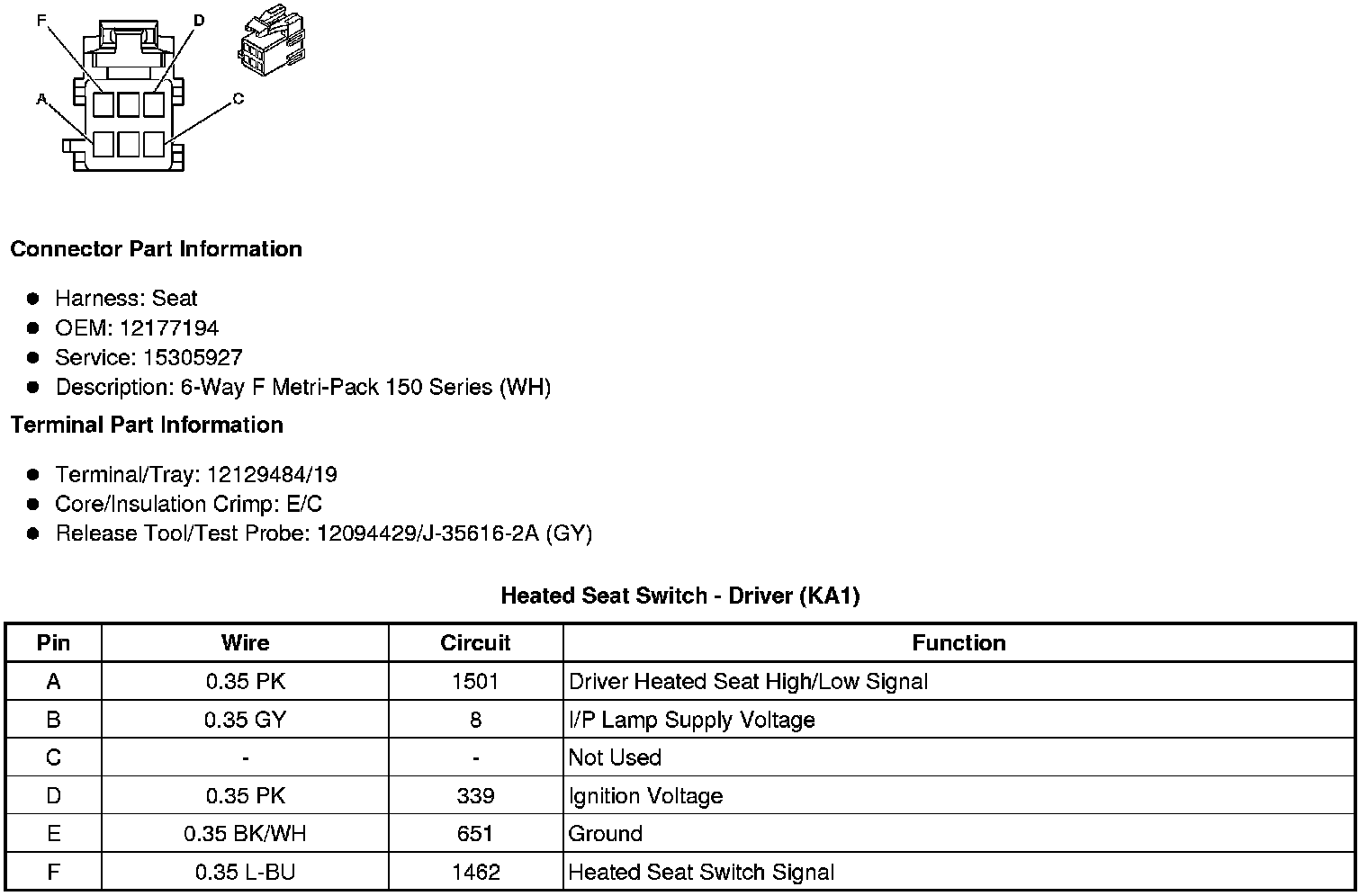 Heated Seat Switch - Driver (KA1)