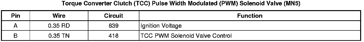 Torque Converter Clutch (TCC) Pulse Width Modulation (PWM) Solenoid Valve (MN5)